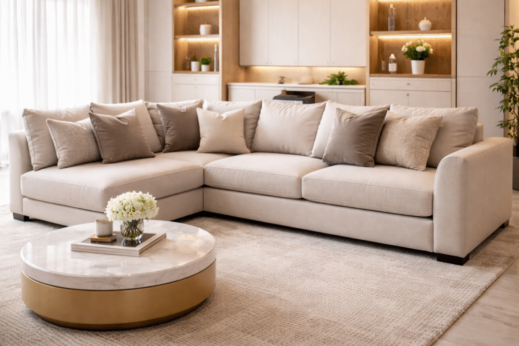 Enhance your home interiors with customized sofa designs crafted to perfectly match your space, style, and lifestyle. At AJ Interiors & Furniture, we design and manufacture bespoke sofas for apartments and luxury villas across Tamil Nadu. Every sofa is thoughtfully created with premium materials, ergonomic comfort, and refined